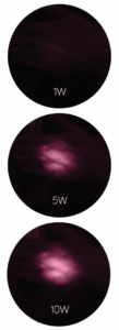Power influences photobiomodulation therapy in a number of ways. When energy is imparted to the body, it is measured in Joules. Joules is the product of power (Watts) x time (seconds). By definition, higher power allows Joules to be delivered to tissue in less time. This allows larger areas and deeper tissues to be treated more quickly. Recent research has also shown that higher power density, referred to as irradiance, can have profound effects on reducing pain in minutes. All of these factors are clinically desirable.